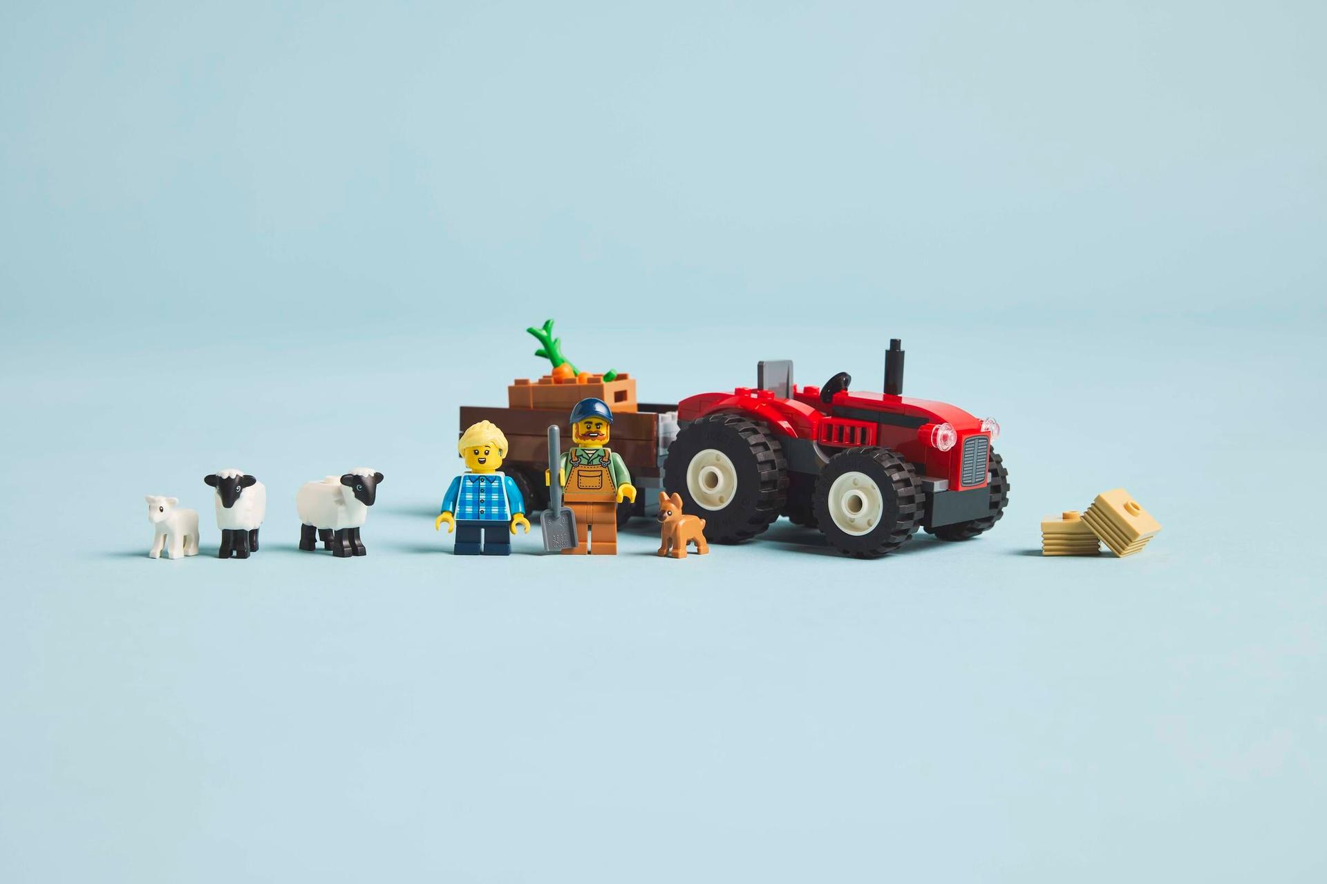 Red Farm Tractor with Trailer & Sheep